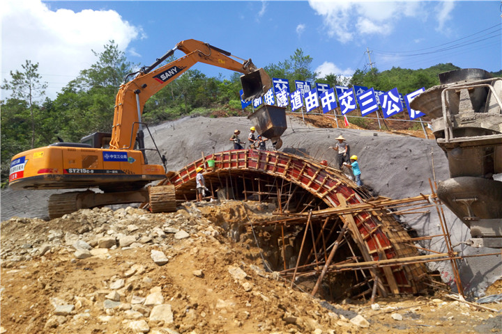 庆祝九绵高速平地螺旋隧道进口右线顺利进洞